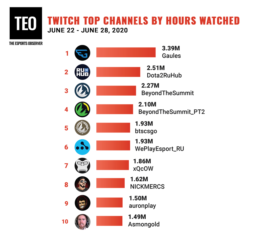 Помимо этого Esports Observer опубликовали статистику просмотров на каналах, и там картина выглядит следующим образом: