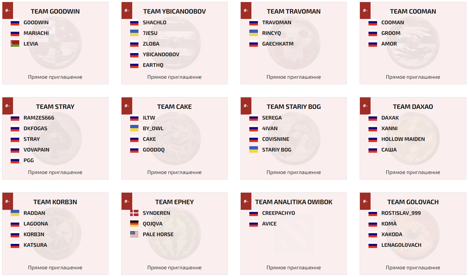 Составы участников: