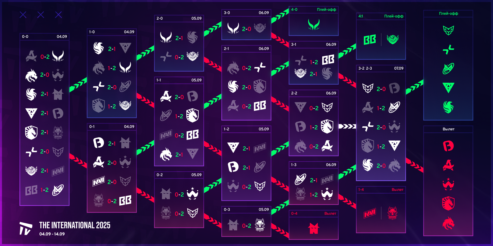 Bugünün sonuçlarına göre, sahneye çıkamadan The International 2025'ten Team Spirit, Aurora, Team Liquid ve Wildcard Gaming elendi. Üç gün sonra playofflara geçen takımlar turnuvanın ana sahnesinde oynayacaklar.