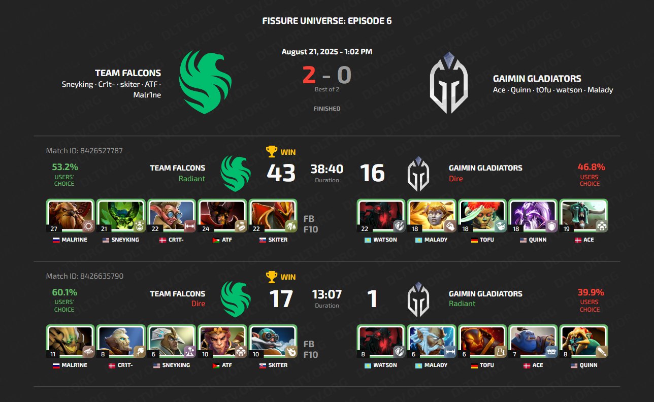 Günün dikkat çeken olayı Team Falcons ile Gaimin Gladiators arasındaki maç oldu. İlk haritada Malr1ne 20/1/16 skoruyla oynadı ve ikinci harita 13 dakikada sona erdi - Gaimin Gladiators GG dedi. Maçtan sonra Malr1ne babasının zaferle ilgili tepkisini paylaştı: