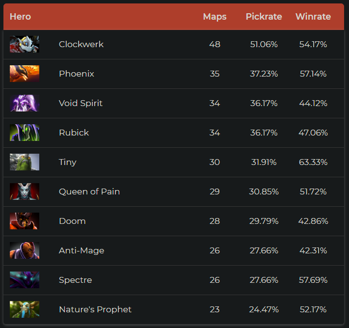 Примечательно, что на этом турнире Clockwerk’а выбирали в половине всех сыгранных матчей.